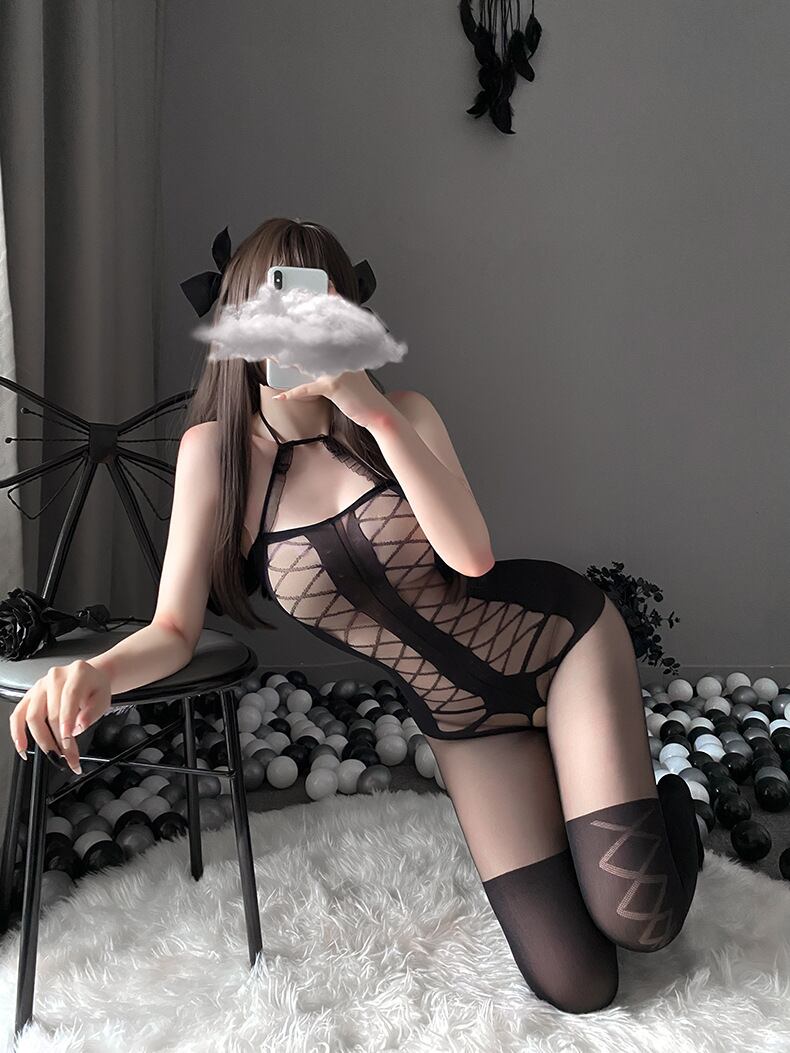 大胆さと上品さを兼ね備えた、魅惑のブラックボディストッキング。