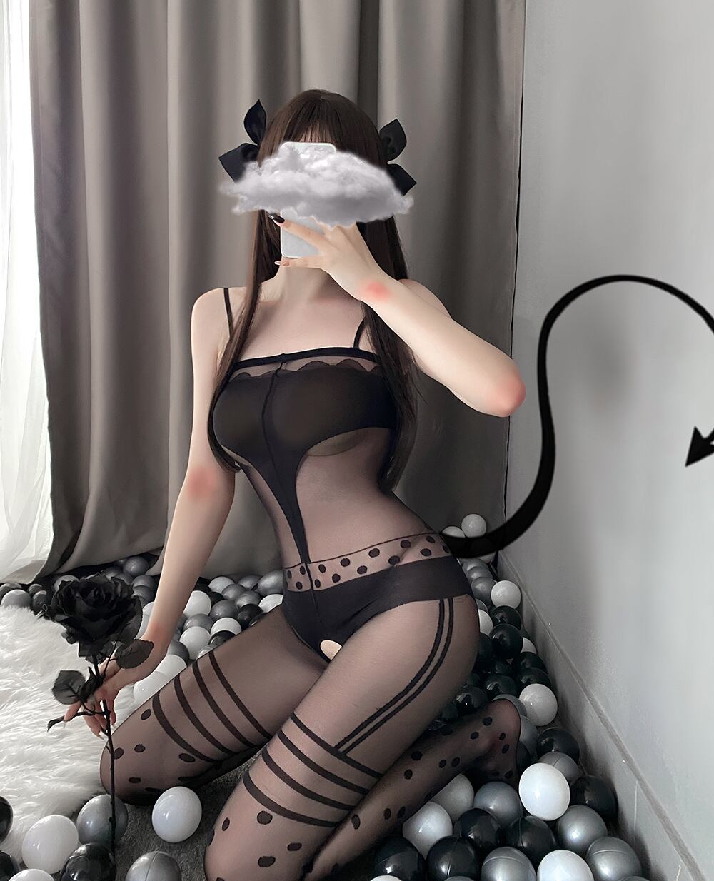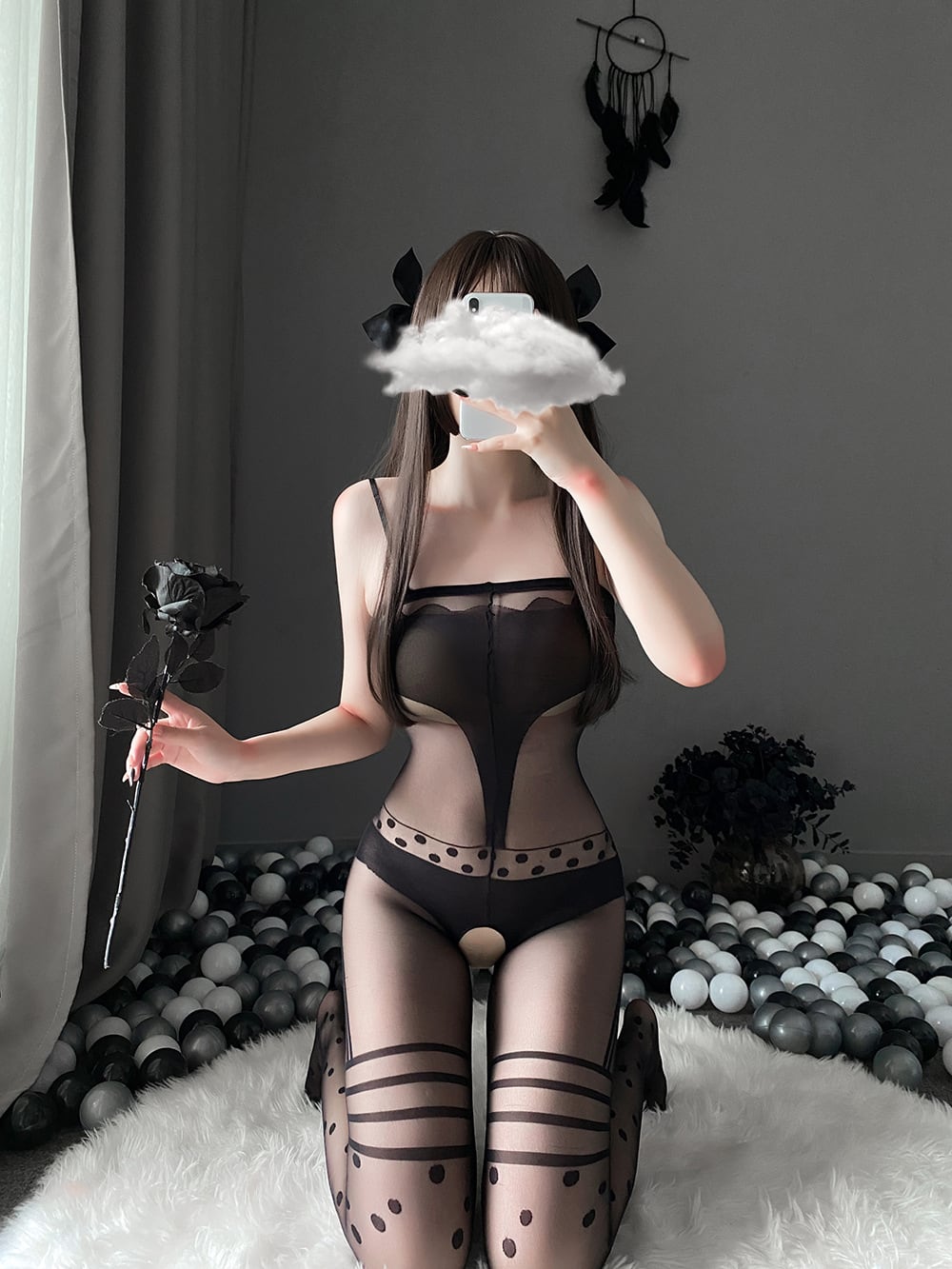 妖艶な透け感で魅せる、ドットデザインのオールインワンランジェリー